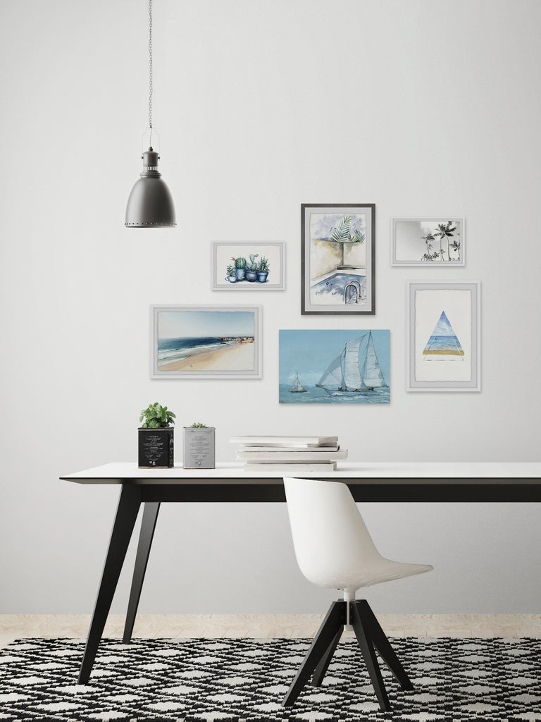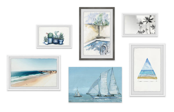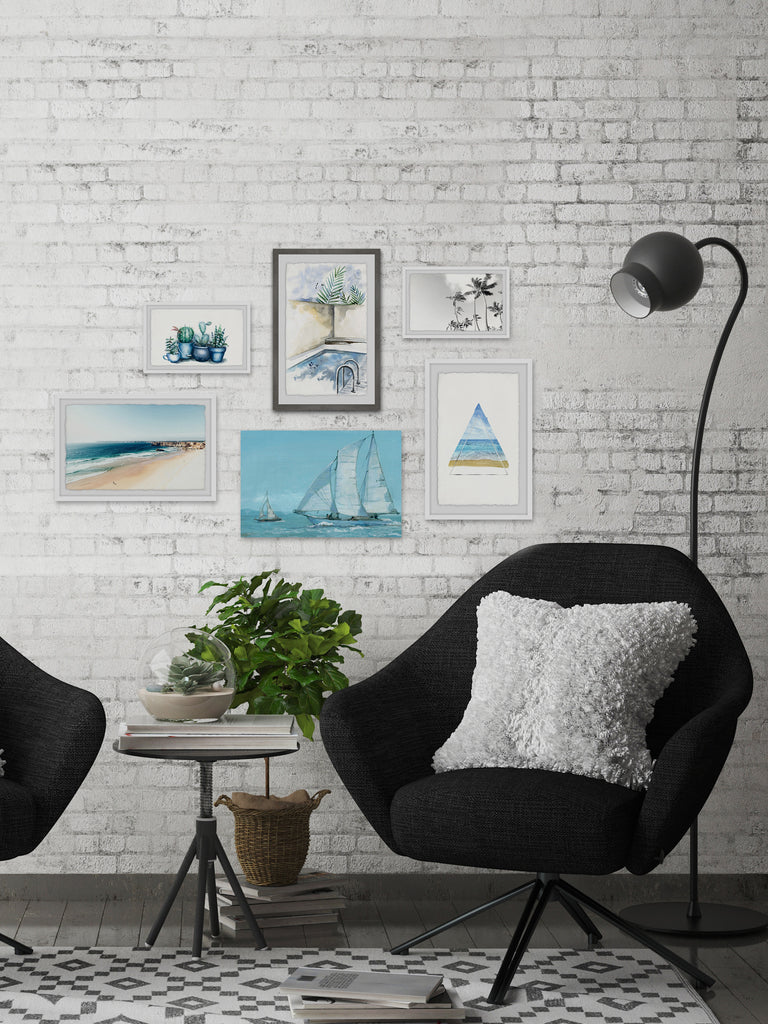 - Set includes (2) 12x8, (2) 12x18 and (1) 18x12 framed prints, and (1) 18x12 canvas