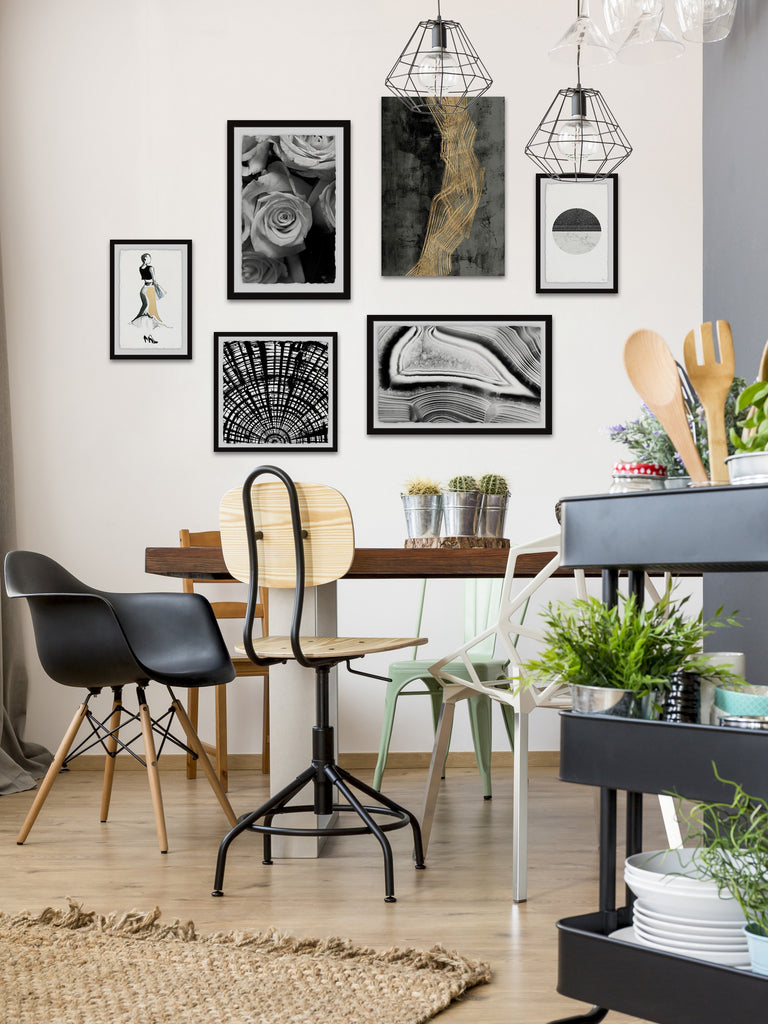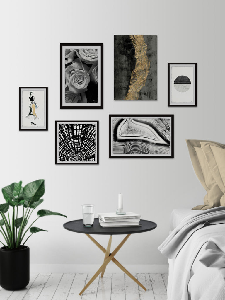 - Set includes (2) 8x12, (1) 12x18, (1) 18x12 and (1) 12x12 framed prints, and (1) 12x18 canvas