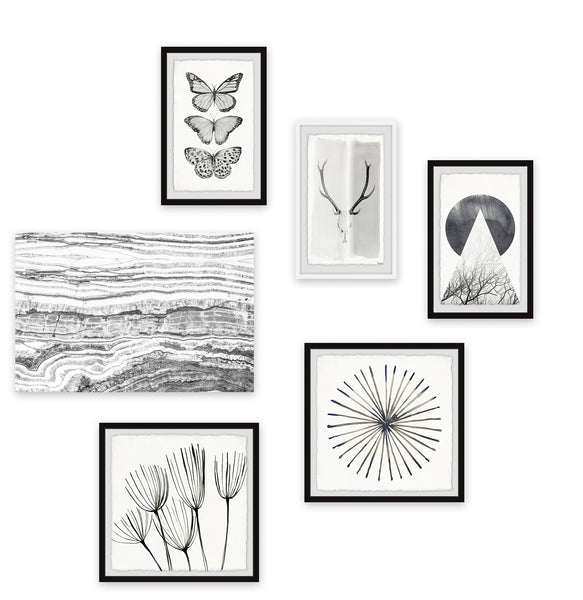 • Set includes (3) 8x12 and (2) 12x12 framed prints, and (1) 18x12 canvas