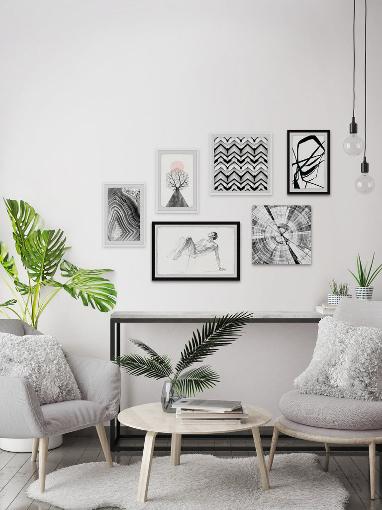 - Set includes (3) 8x12, (1) 12x12 and (1) 18x12 framed prints, and (1) 12x12 canvas