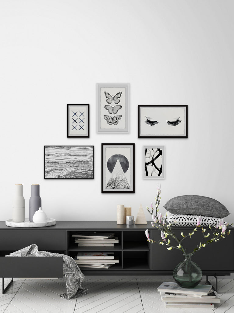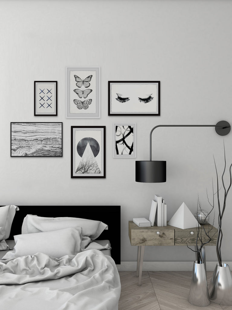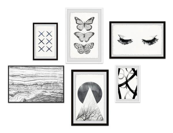 - Set includes (2) 8x12, (2) 12x18 and (1) 18x12 framed prints, and (1) 18x12 canvas with floater frame