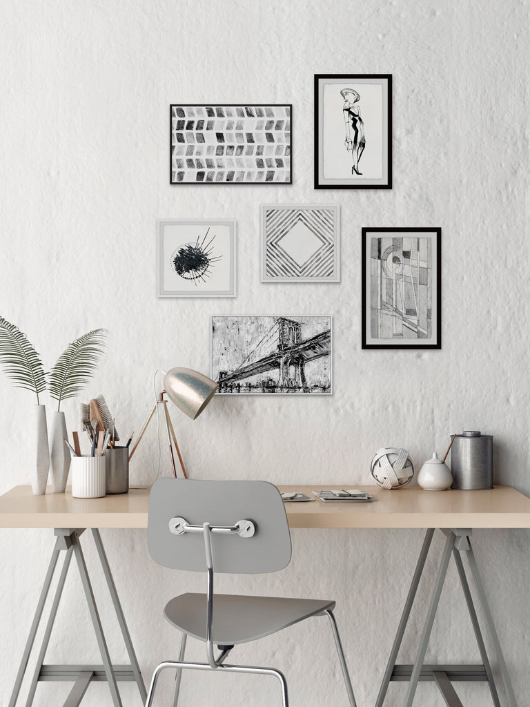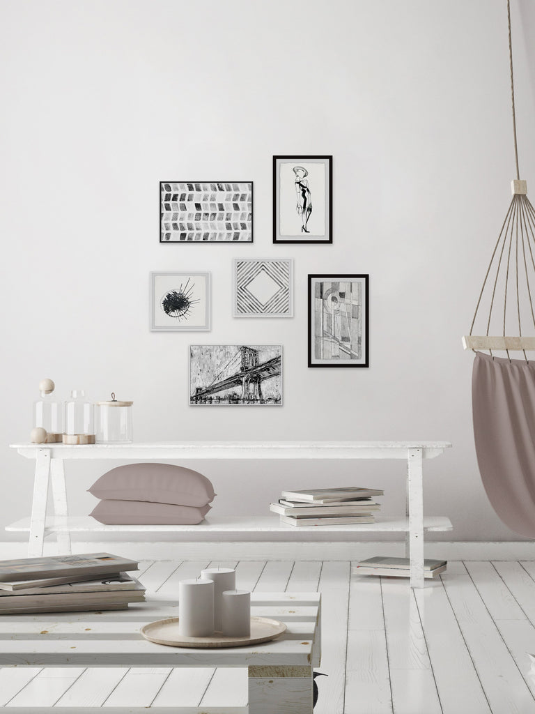 - Set includes (2) 12x18 and (2) 12x12 framed prints, and (2) 18x12 canvas with floater frame