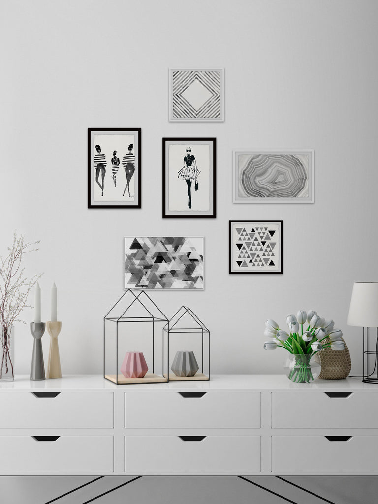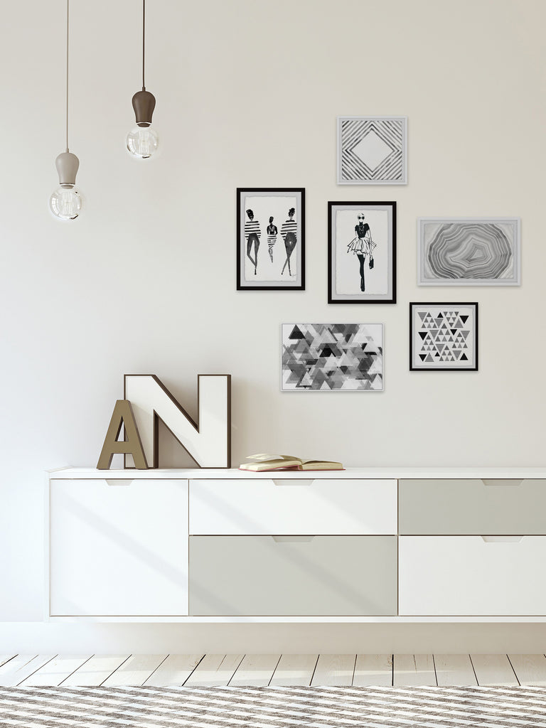 • Set includes (2) 12x12, (2) 12x18 and (1) 18x12 framed prints, and (1) 18x12 canvas with floater frame