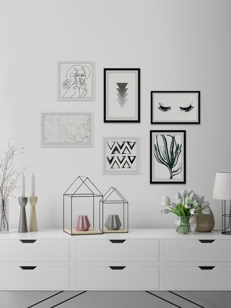 • Set includes (2) 12x12, (2) 12x18 and (2) 18x12 framed prints