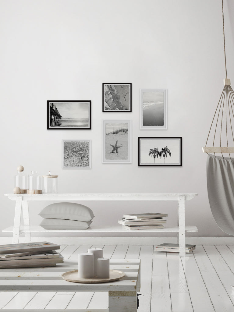 - Set includes (2) 18x12, (2) 12x18 and (2) 12x12 framed prints
