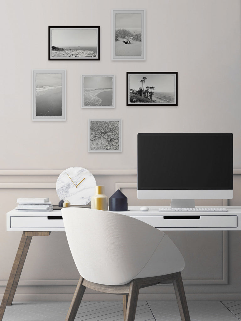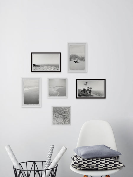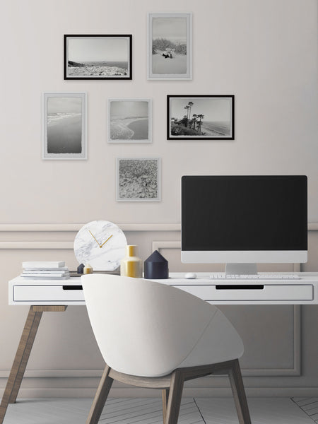 - Set includes (2) 18x12, (2) 12x18 and (2) 12x12 framed prints