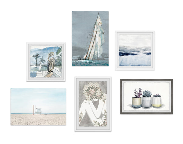 Coastal Palm Vibe Hexaptych (Canvas) (Framed print)