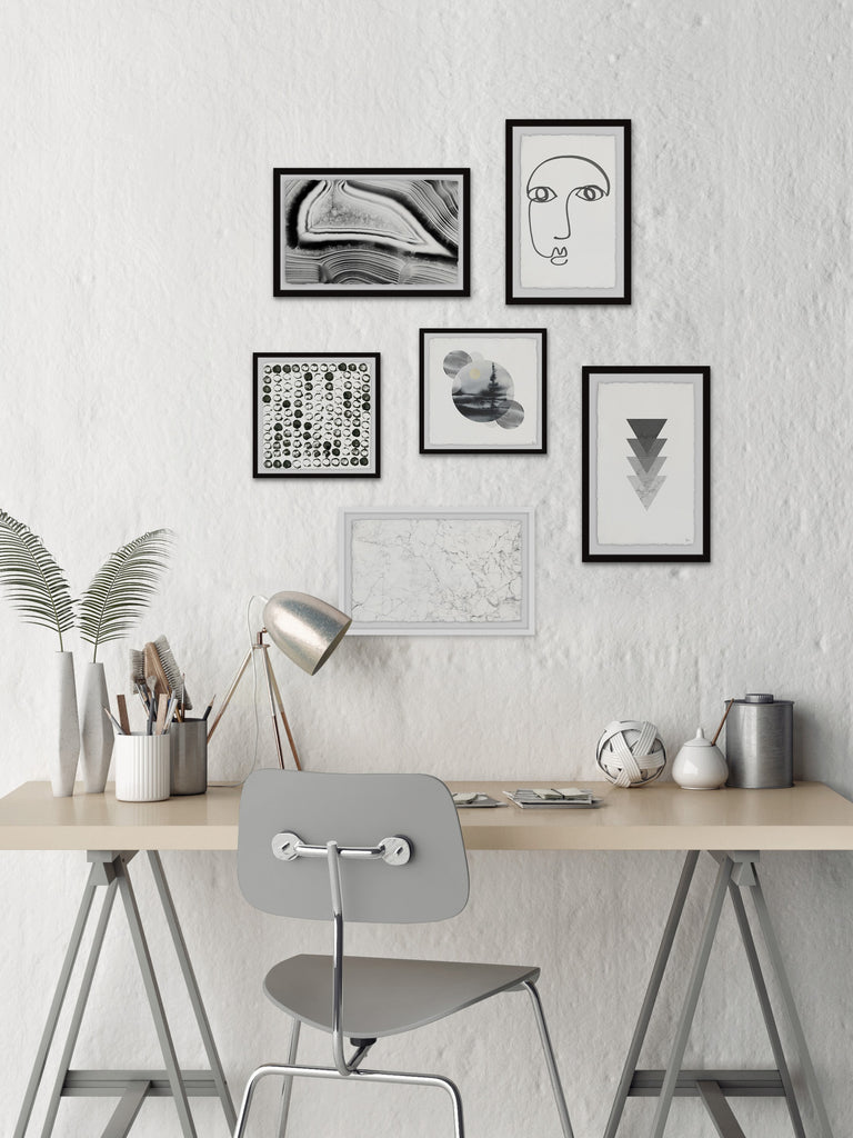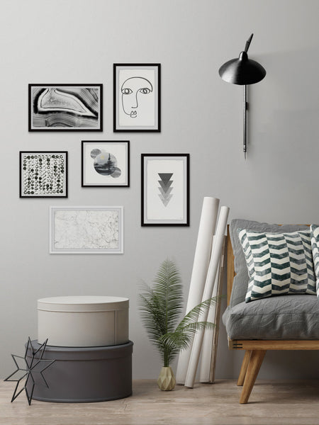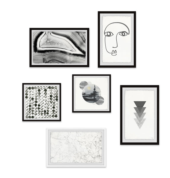 - Set includes (2) 18x12, (2) 12x12 and (2) 12x18 framed prints