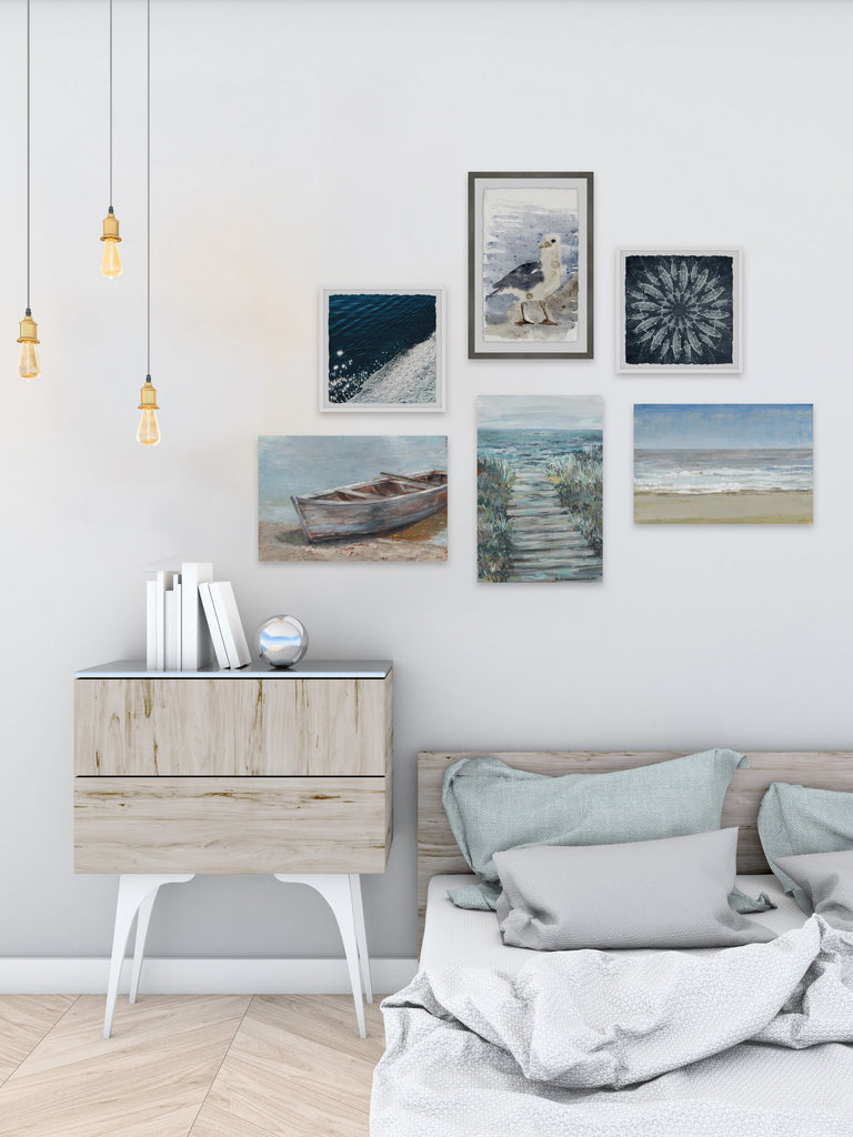 - Set includes (2) 12x12 and (1) 12x18 framed prints, and (2) 18x12 and (1) 12x18 canvas