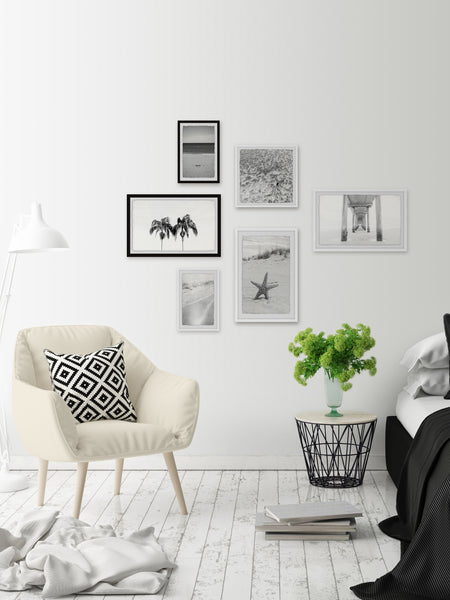 - Set includes (2) 18x12, (2) 8x12, (1) 12x12 and (1) 12x18 framed prints