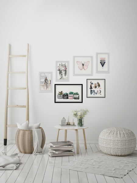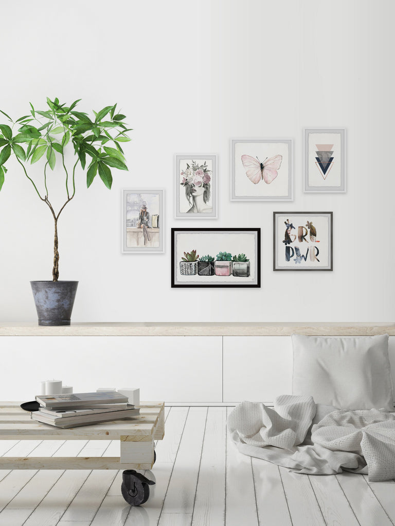- Set includes (3) 8x12, (2) 12x12 and (1) 18x12 framed prints