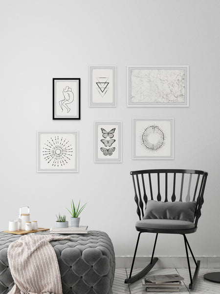 - Set includes (1) 18x12, (3) 8x12 and (2) 12x12 framed prints