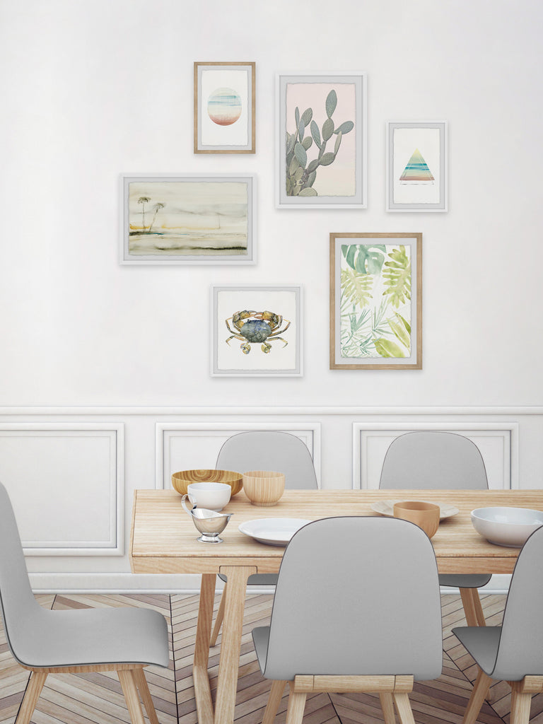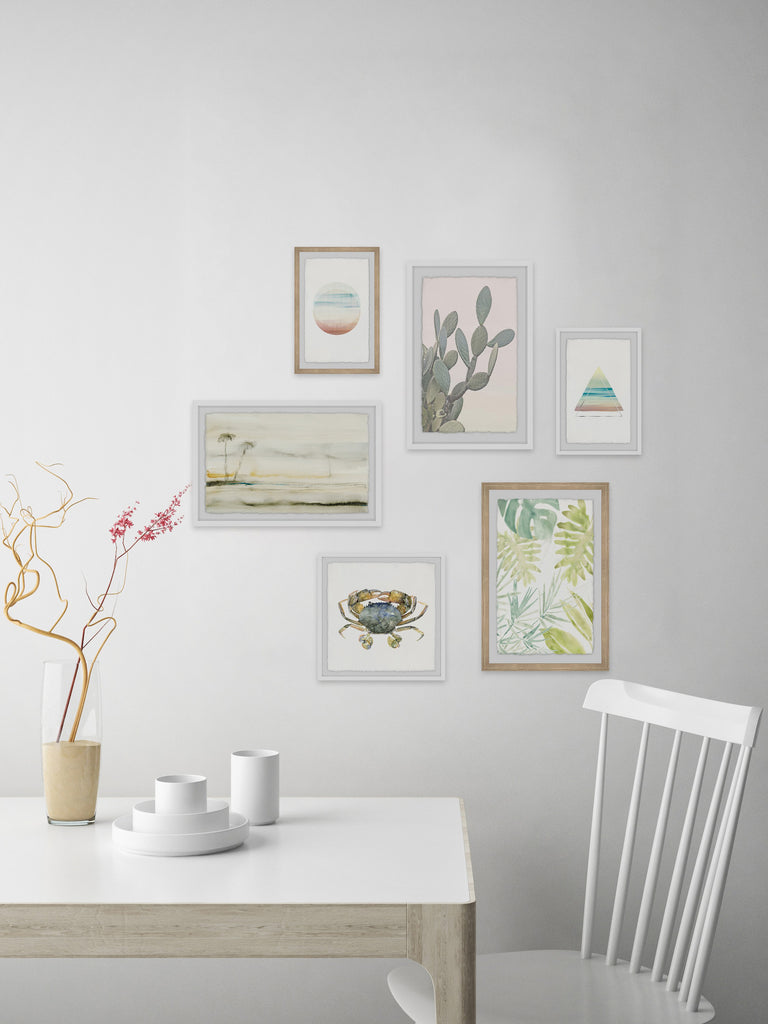 - Set includes (2) 8x12, (2) 12x18, (1) 12x12 and (1) 18x12 framed prints