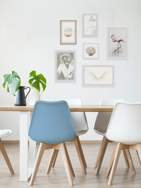 - Set includes (1) 12x12, (2) 12x18, (1) 24x16 and (2) 16x24 framed prints