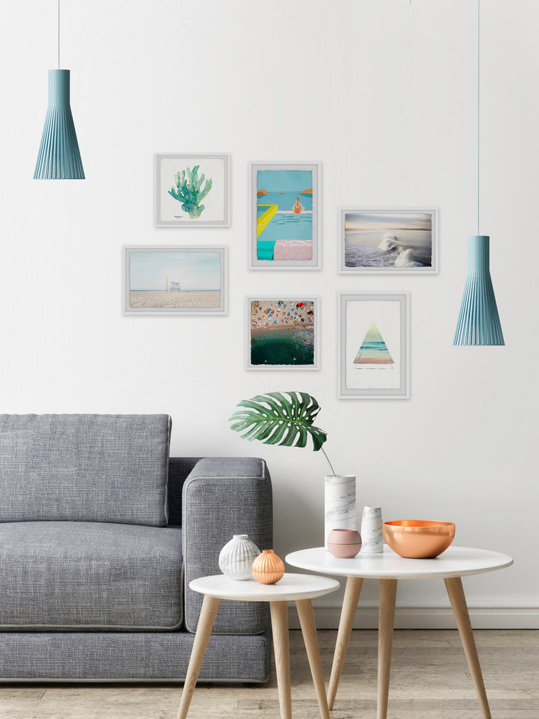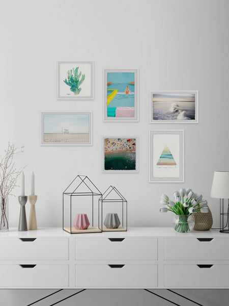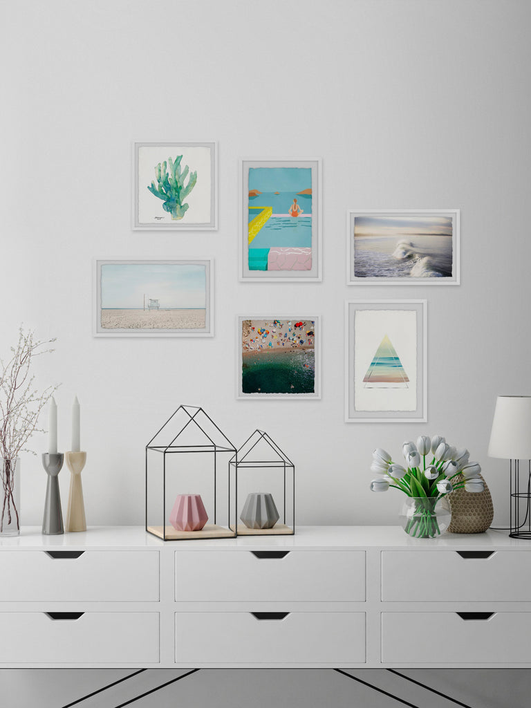 - Set includes (2) 12x12, (2) 12x18 and (2) 18x12 framed prints