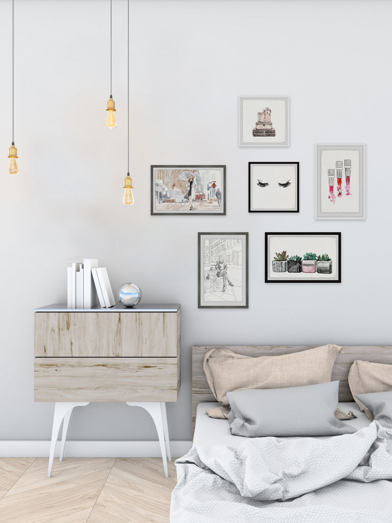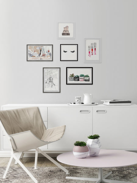 - Set includes (2) 12x12, (2) 18x12 and (2) 12x18 framed prints