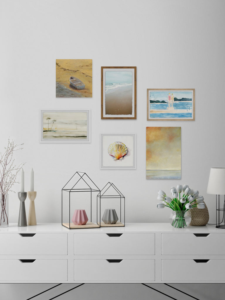 - Set includes (2) 18x12, (1) 12x18 and (1) 12x12 framed prints, and (1) 12x18 and (1) 12x12 canvas