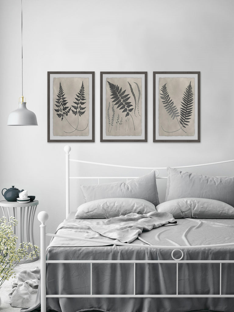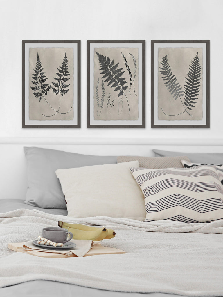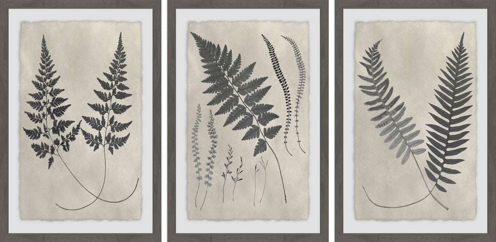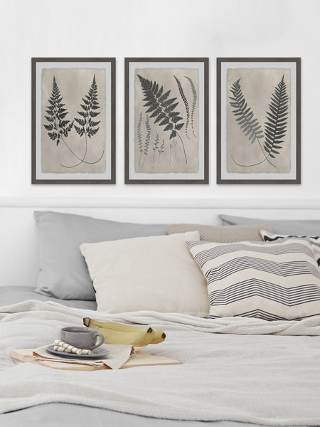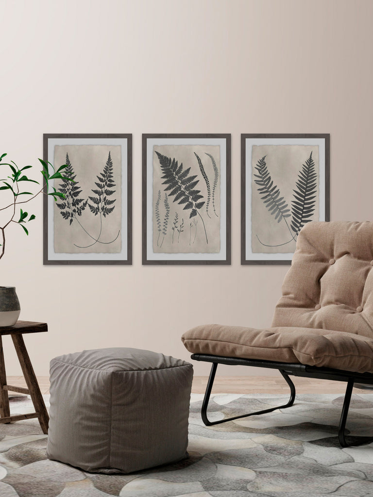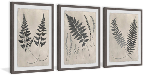 Vintage Fern Study II Triptych (Framed print)