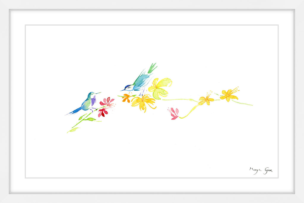 Collection: All, Birds, Flowers Water Paint, Framed Print, Kids, Kids' Animal Art, Maya Gur