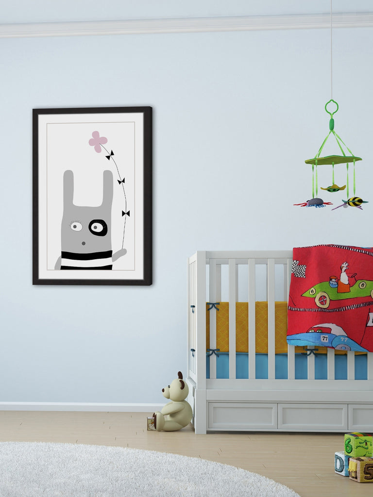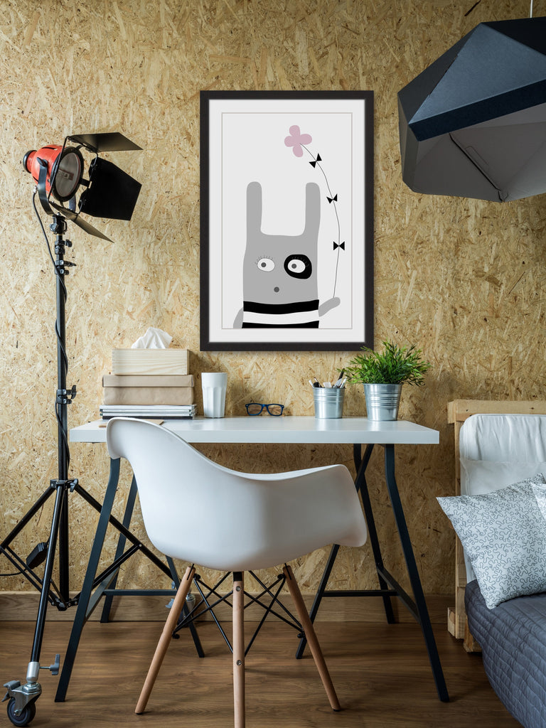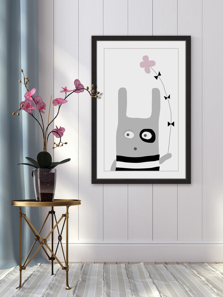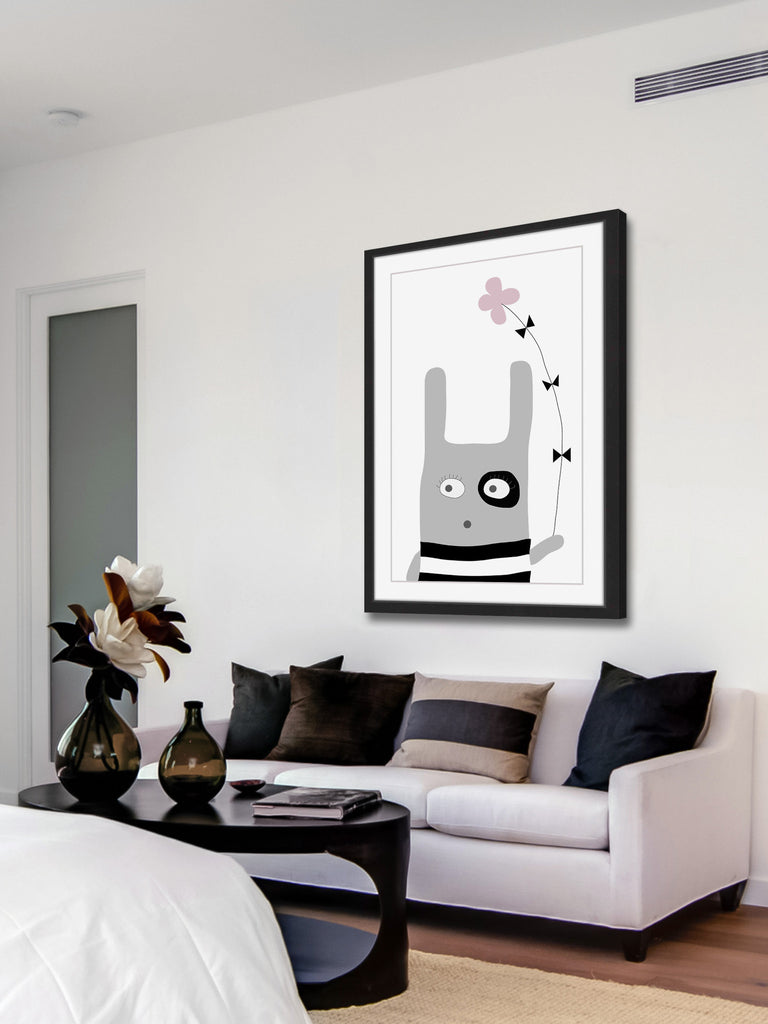 Bunny Flower Pink (Framed print)
