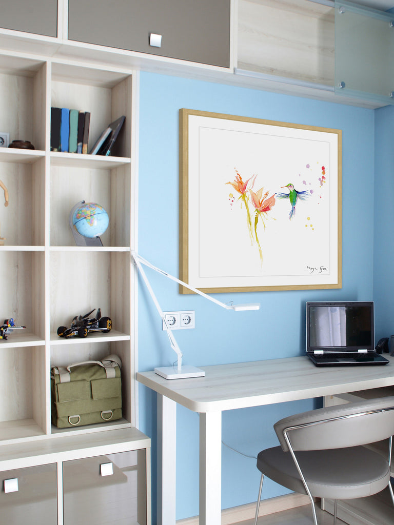 Collection: All, Birds, Floral & Botanical, Flowers Water Paint, Framed Print, Kids, Kids' Animal Art, Maya Gur