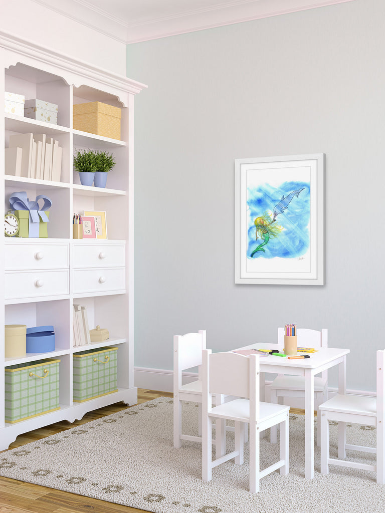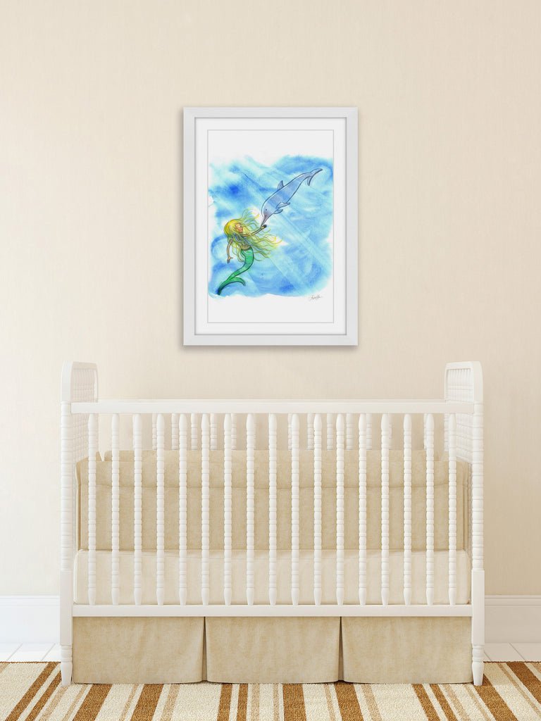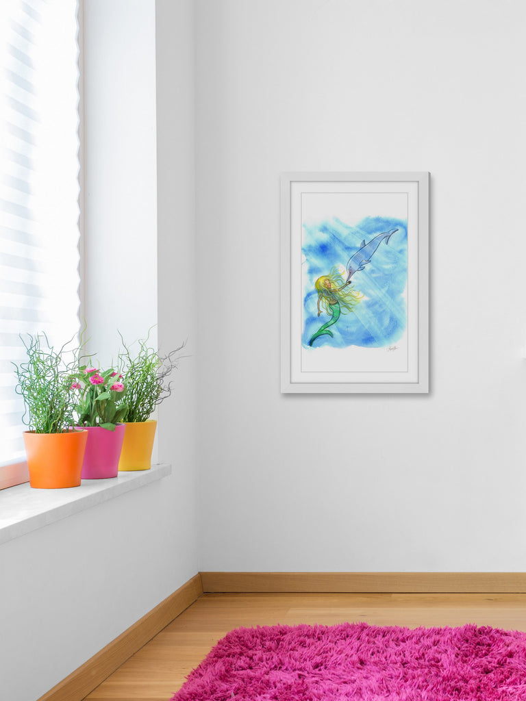 Mermaid Dolphin (Framed print)