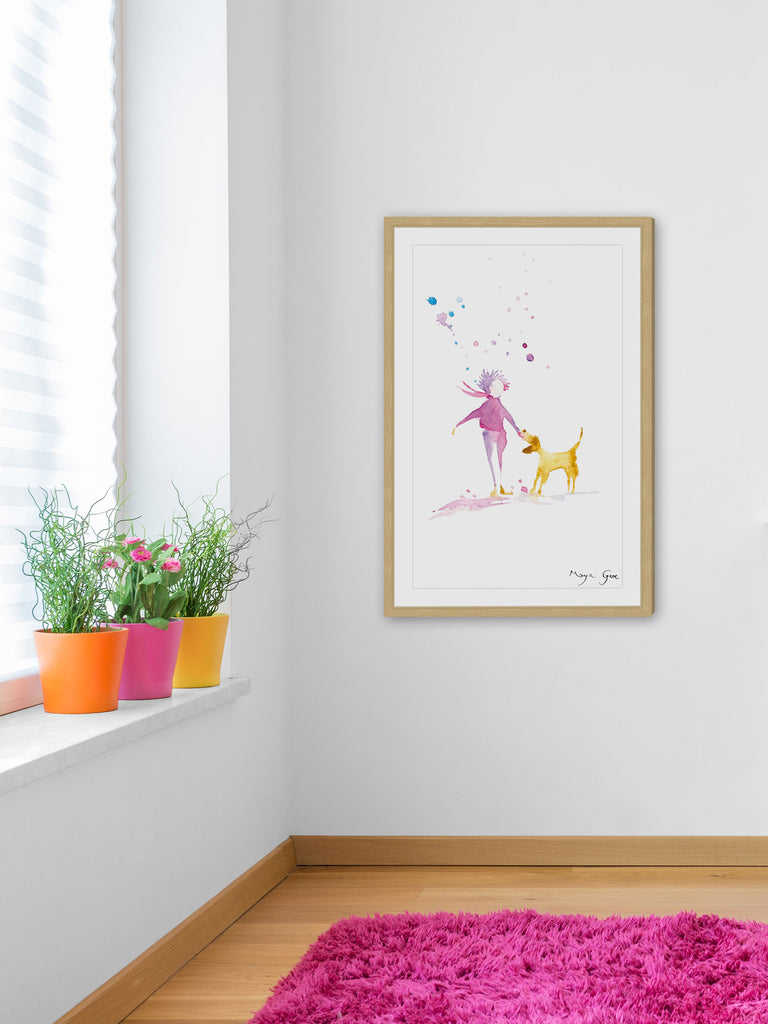 Collection: All, Dogs, Framed Print, Kids, Kids' Animal Art, Maya Gur, Pastel Watercolor