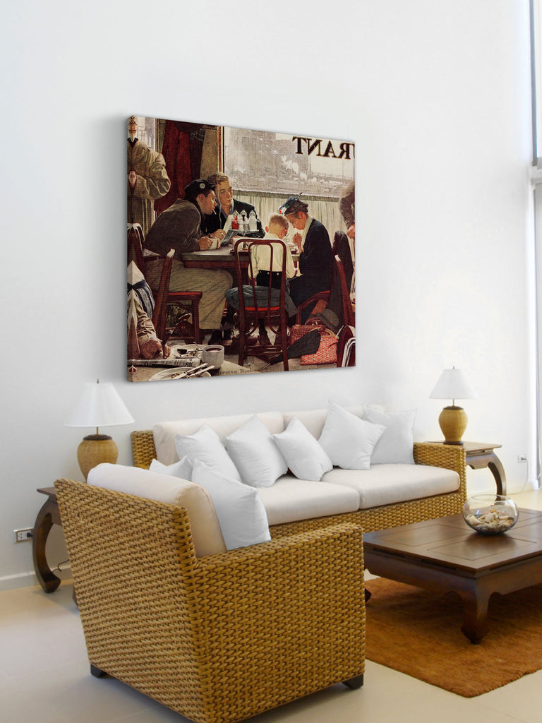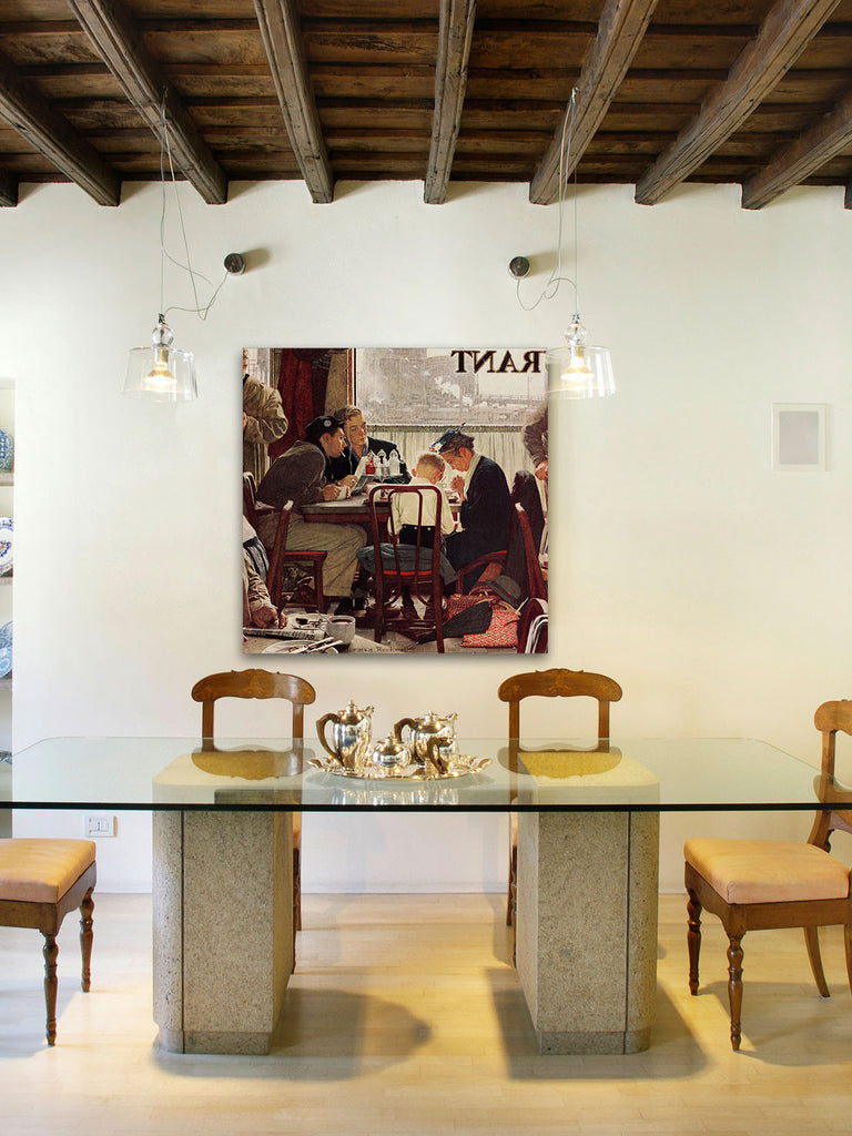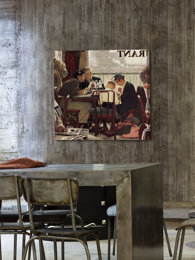Created in 1951 by Norman Rockwell, Saying Grace, was painted for the cover of the Saturday Evenings Post on November 24, 1951 for the Thanksgiving issue. The goal for the painting was to show, "a snapshot of Americans at their best: jumbled together, disparate of background, yet coexisting peacefully. Out of all 321 paintings, Saying Grace was voted by newspaper readers as their favorite of RockwellŽs famous paintings!