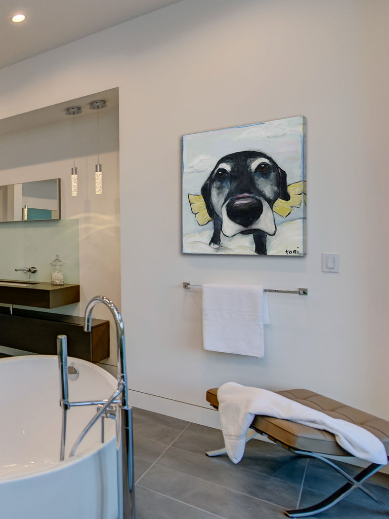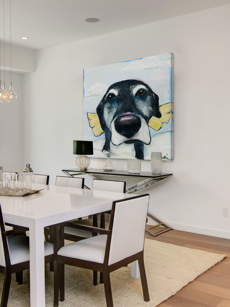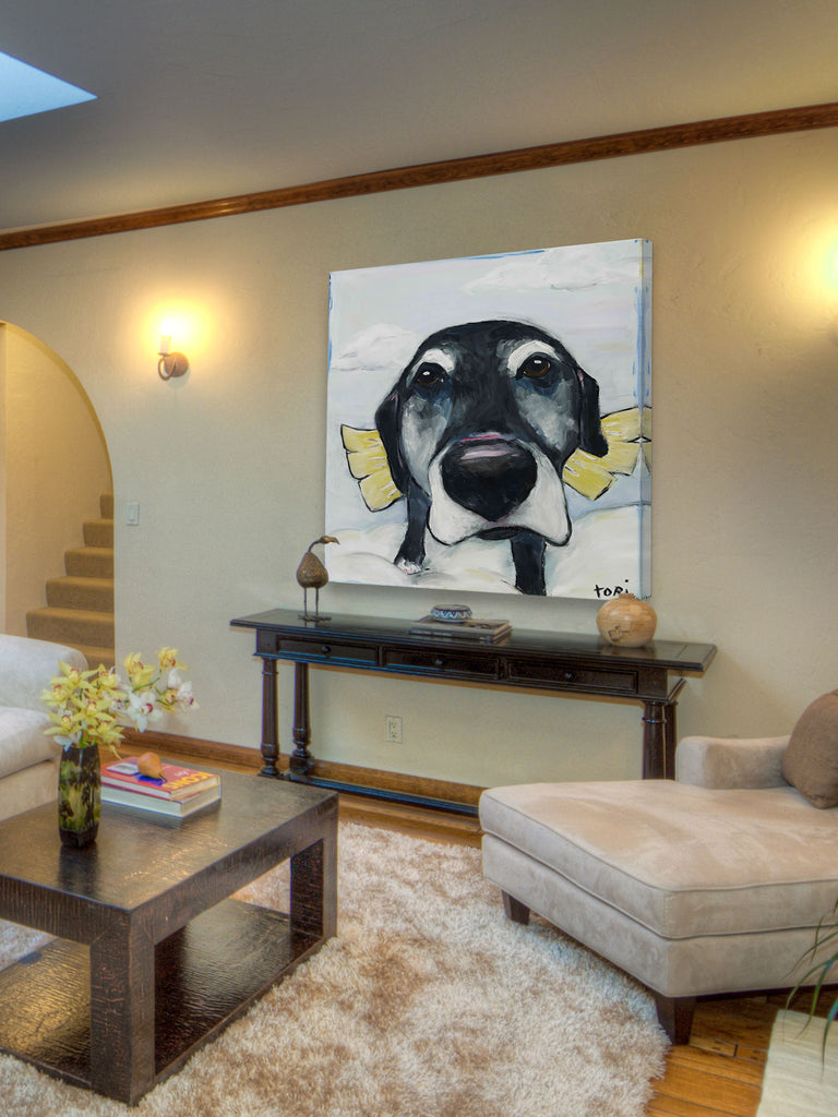 Tori Campisi artwork features dogs, patterns and other compositions exploding with optimism, color and "happy." In her words, "Ultimately, I want people to look at my art and smile, to find one part of their life within my painting that they, too, could relate to. I want my art to have a point of contact."