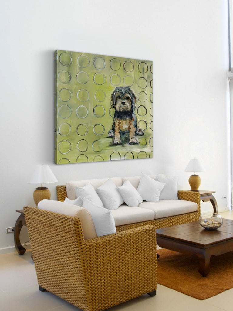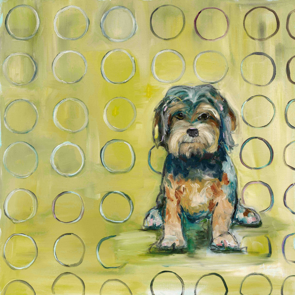 Tori Campisi artwork features dogs, patterns and other compositions exploding with optimism, color and "happy." In her words, "Ultimately, I want people to look at my art and smile, to find one part of their life within my painting that they, too, could relate to. I want my art to have a point of contact."