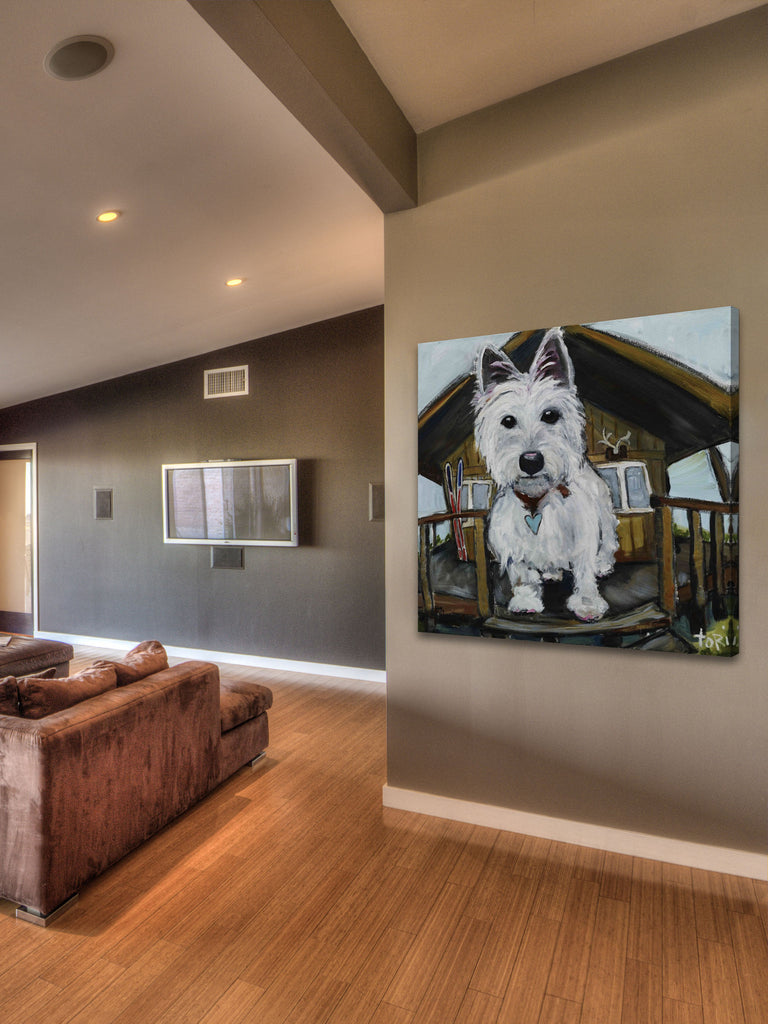 Tori Campisi artwork features dogs, patterns and other compositions exploding with optimism, color and "happy." In her words, "Ultimately, I want people to look at my art and smile, to find one part of their life within my painting that they, too, could relate to. I want my art to have a point of contact."