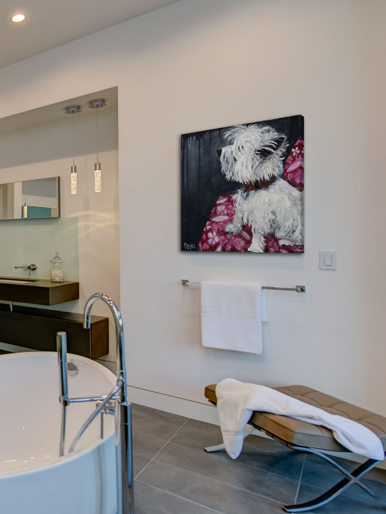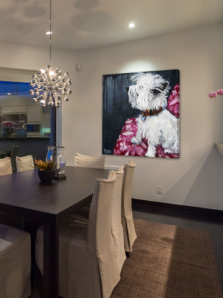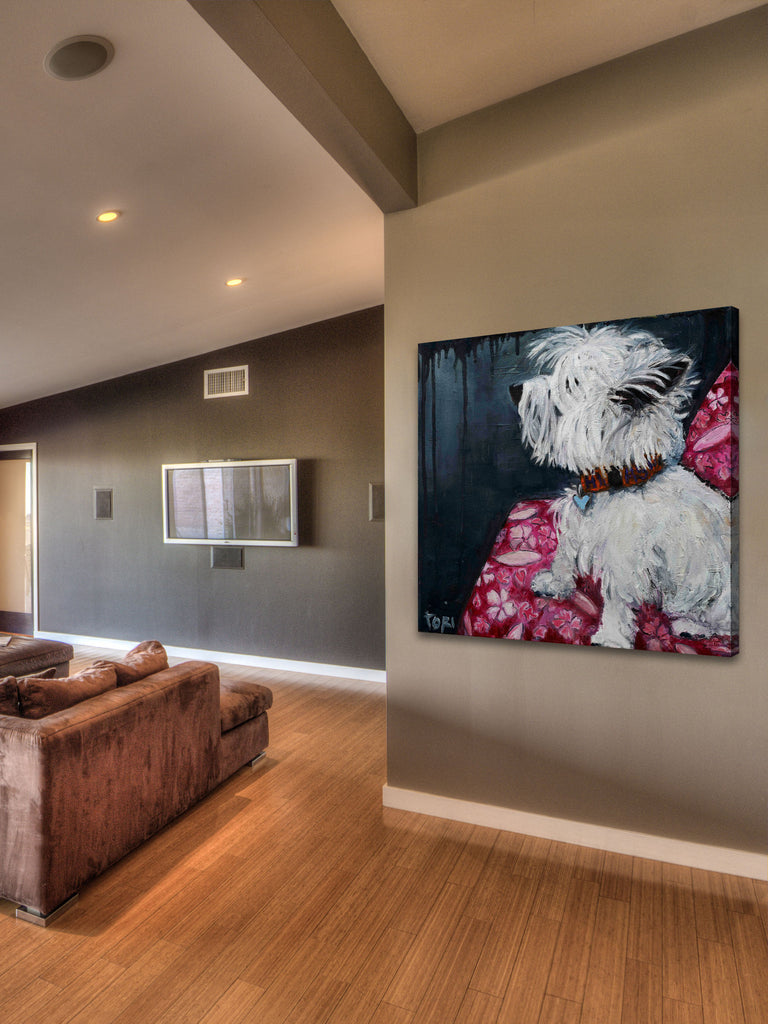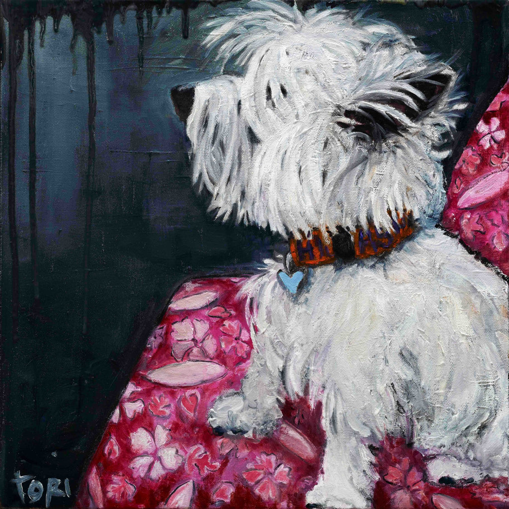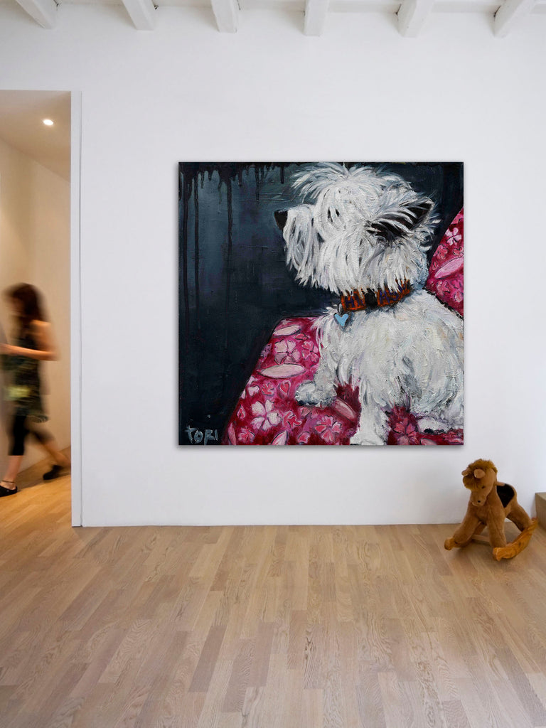 Tori Campisi artwork features dogs, patterns and other compositions exploding with optimism, color and "happy." In her words, "Ultimately, I want people to look at my art and smile, to find one part of their life within my painting that they, too, could relate to. I want my art to have a point of contact."