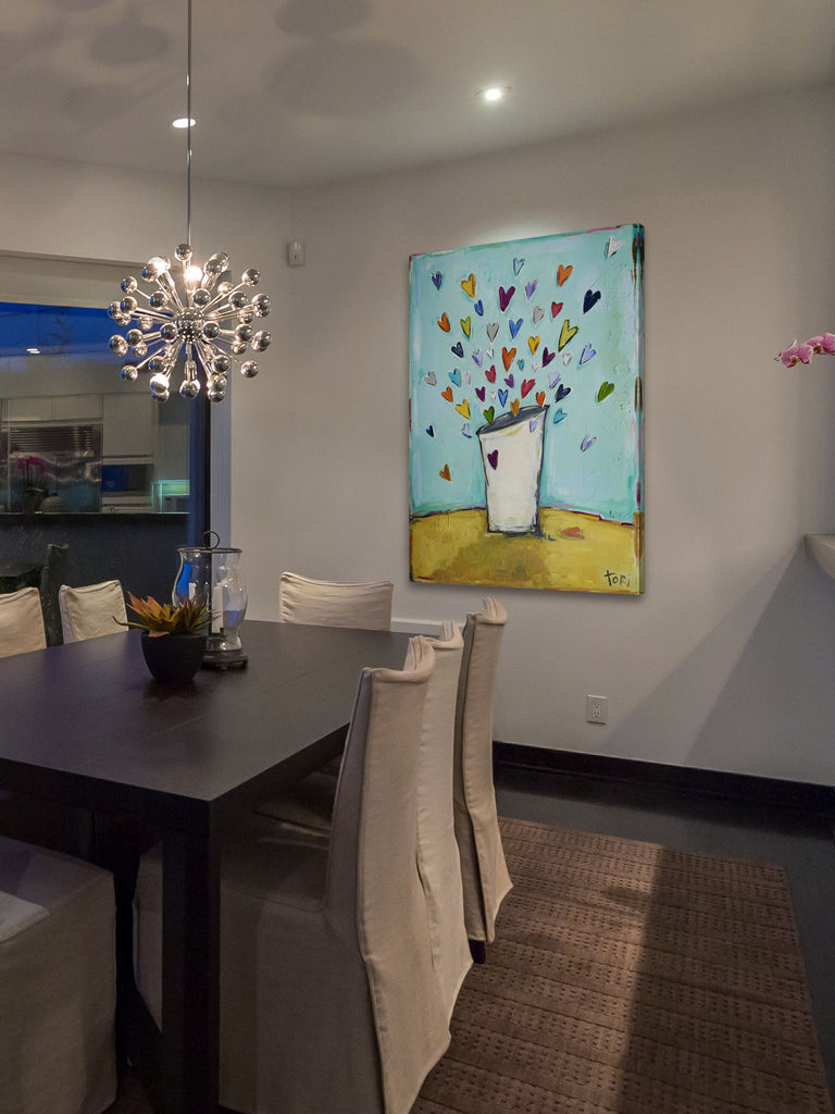 Tori Campisi artwork features dogs, patterns and other compositions exploding with optimism, color and "happy." In her words, "Ultimately, I want people to look at my art and smile, to find one part of their life within my painting that they, too, could relate to. I want my art to have a point of contact."