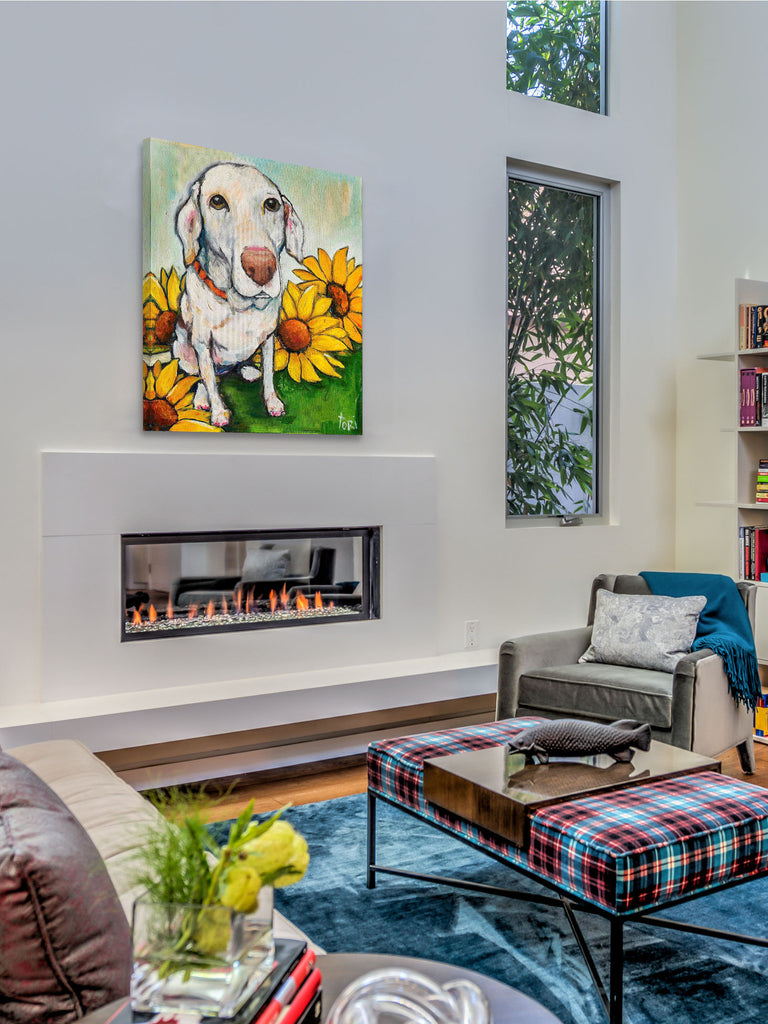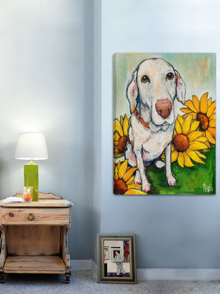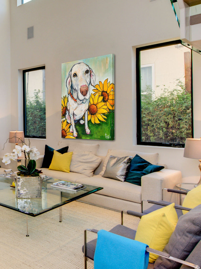 Tori Campisi artwork features dogs, patterns and other compositions exploding with optimism, color and "happy." In her words, "Ultimately, I want people to look at my art and smile, to find one part of their life within my painting that they, too, could relate to. I want my art to have a point of contact."