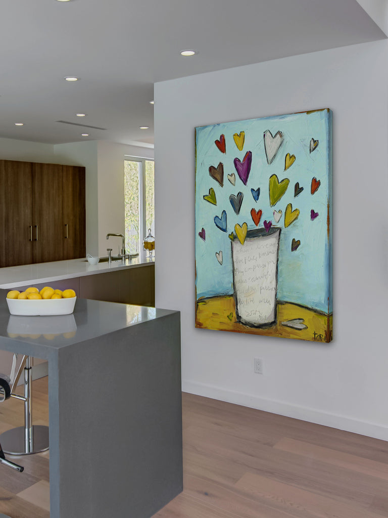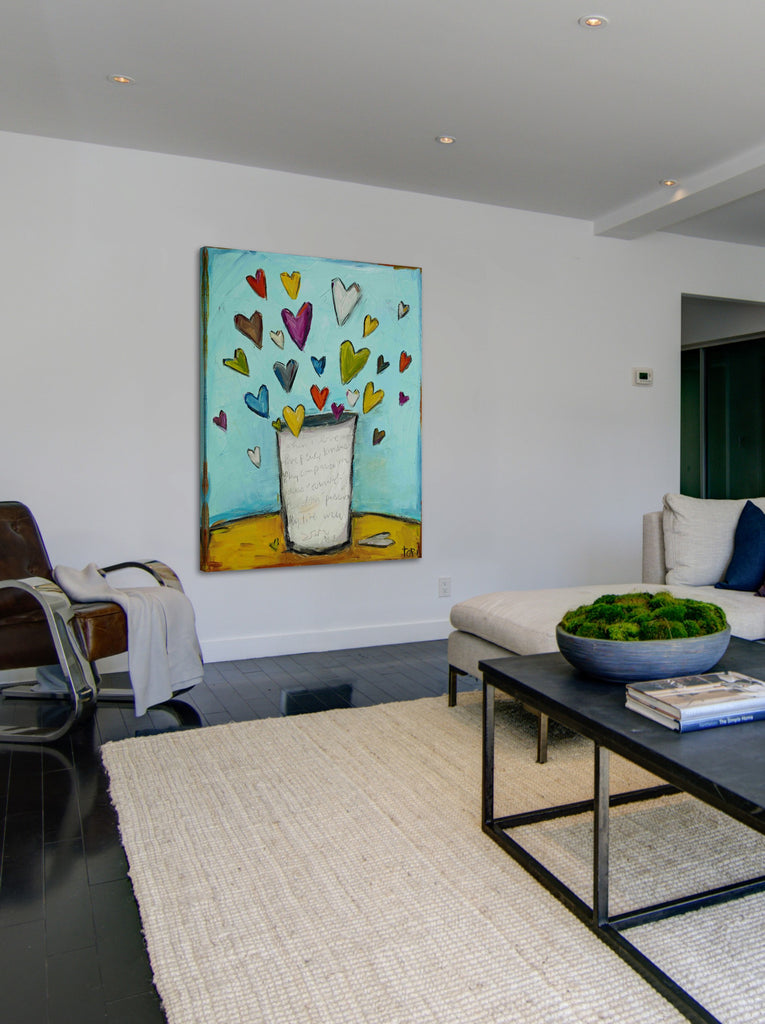 Tori Campisi artwork features dogs, patterns and other compositions exploding with optimism, color and "happy." In her words, "Ultimately, I want people to look at my art and smile, to find one part of their life within my painting that they, too, could relate to. I want my art to have a point of contact."