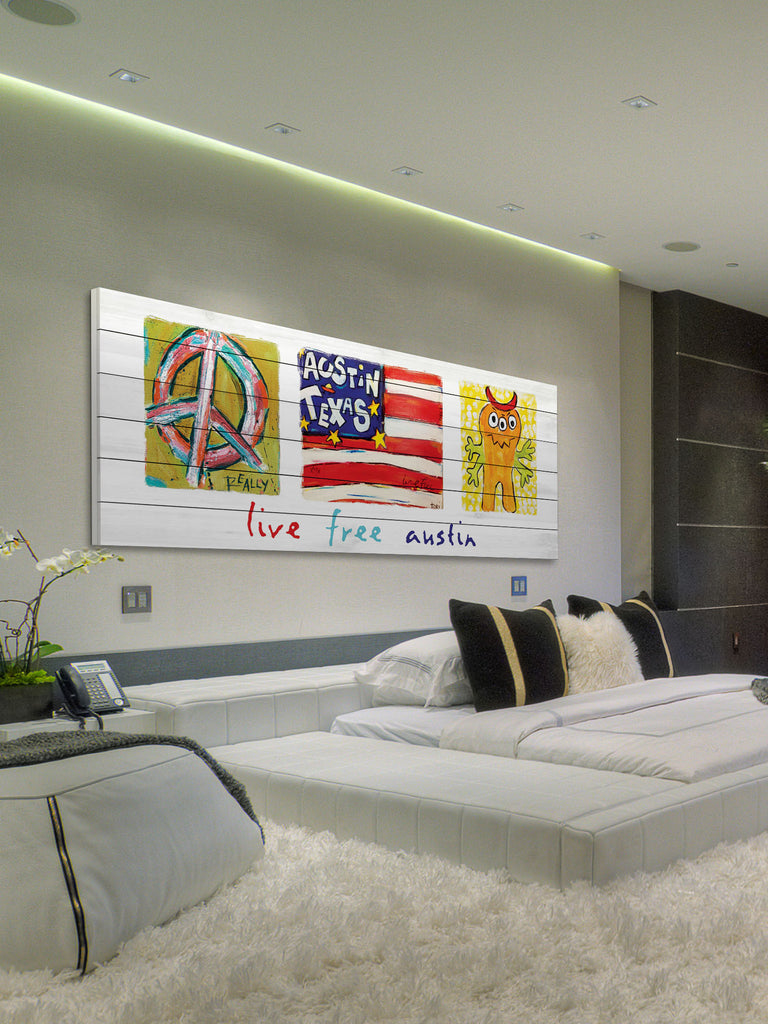 Tori Campisi artwork features dogs, patterns and other compositions exploding with optimism, color and "happy." In her words, "Ultimately, I want people to look at my art and smile, to find one part of their life within my painting that they, too, could relate to. I want my art to have a point of contact."