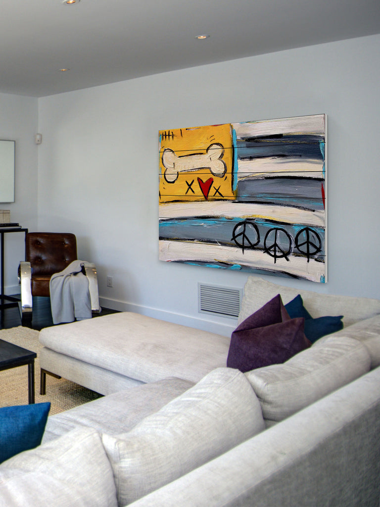 Tori Campisi artwork features dogs, patterns and other compositions exploding with optimism, color and "happy." In her words, "Ultimately, I want people to look at my art and smile, to find one part of their life within my painting that they, too, could relate to. I want my art to have a point of contact."