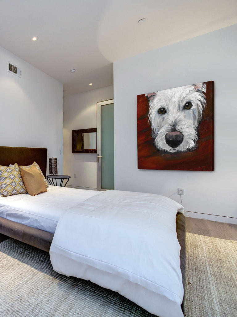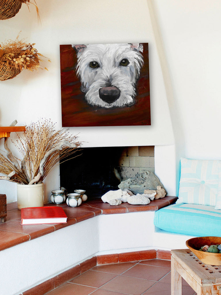 Tori Campisi artwork features dogs, patterns and other compositions exploding with optimism, color and "happy." In her words, "Ultimately, I want people to look at my art and smile, to find one part of their life within my painting that they, too, could relate to. I want my art to have a point of contact."