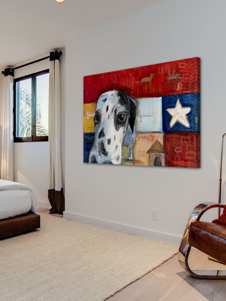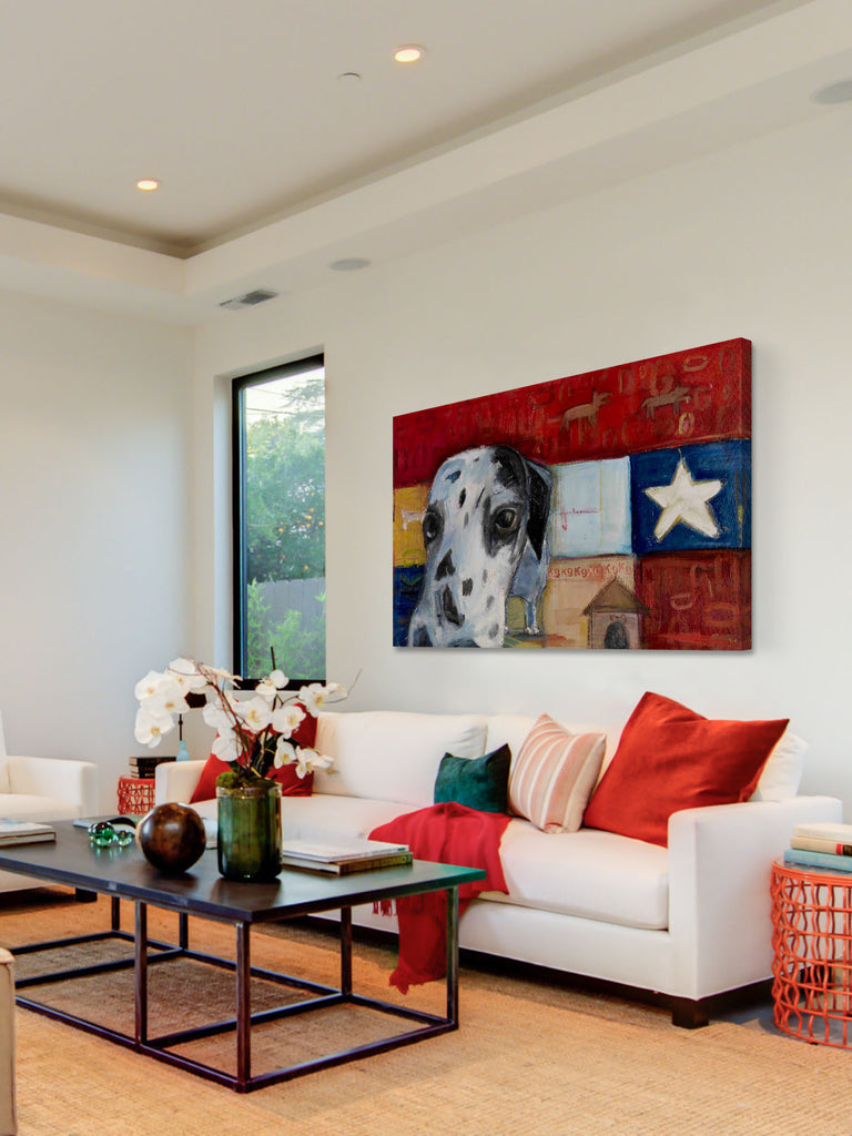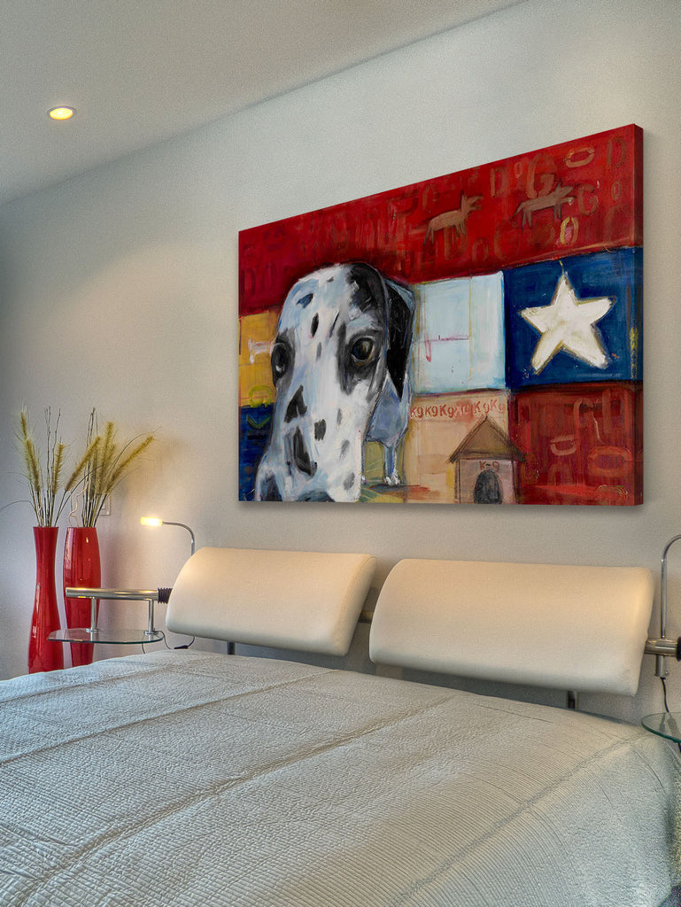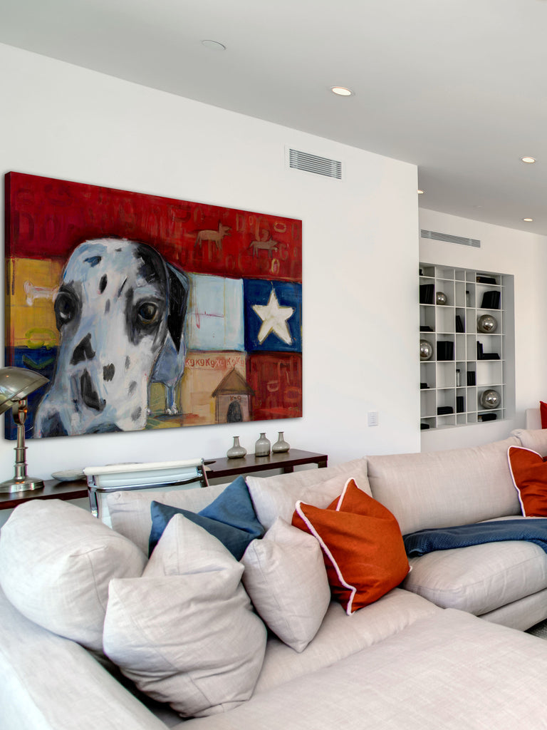 Tori Campisi artwork features dogs, patterns and other compositions exploding with optimism, color and "happy." In her words, "Ultimately, I want people to look at my art and smile, to find one part of their life within my painting that they, too, could relate to. I want my art to have a point of contact."