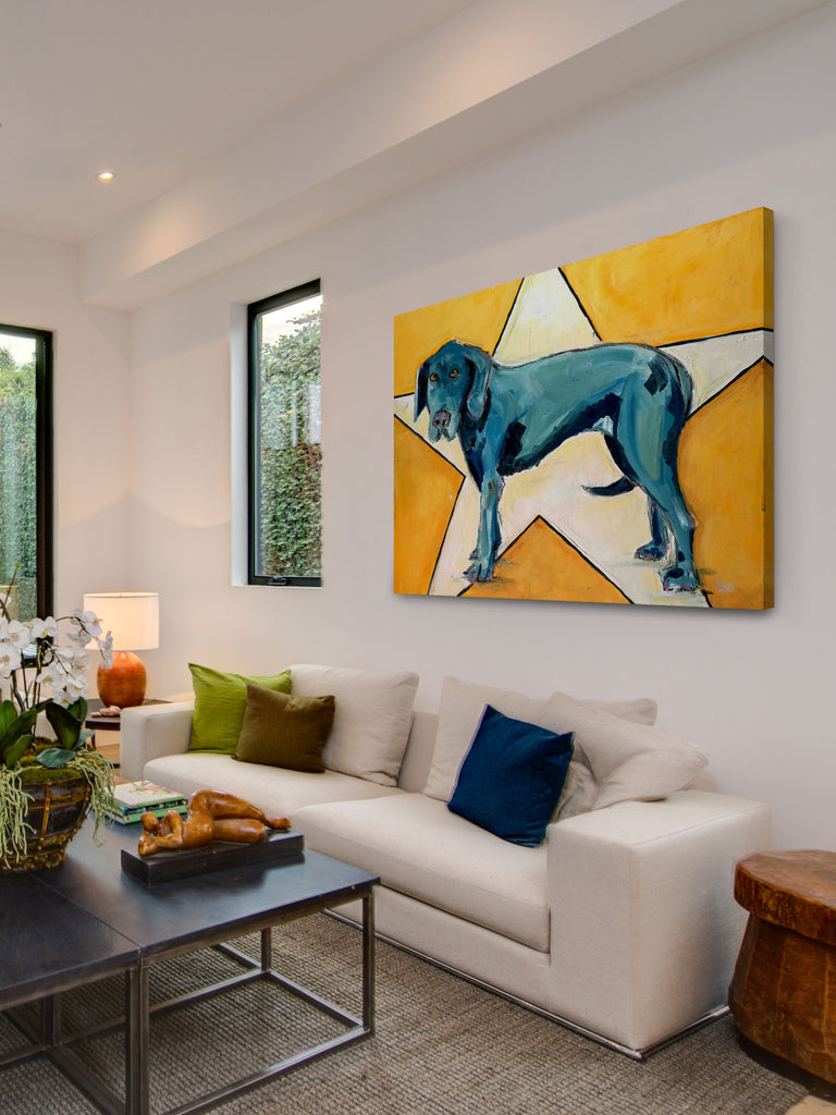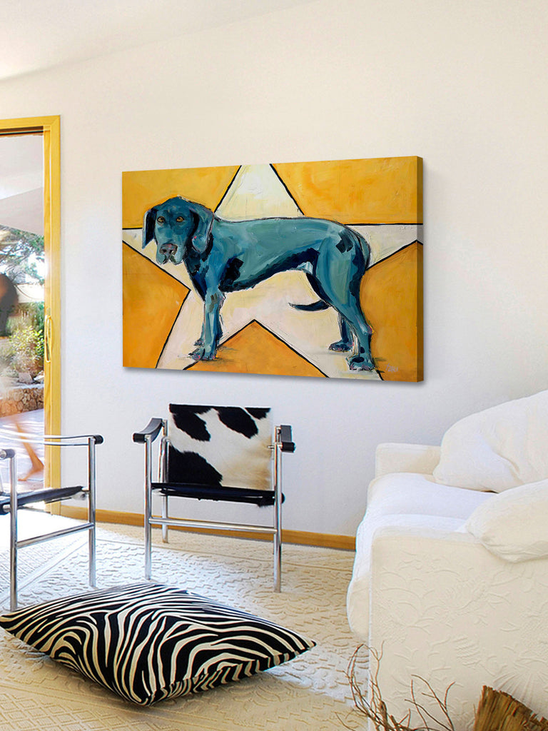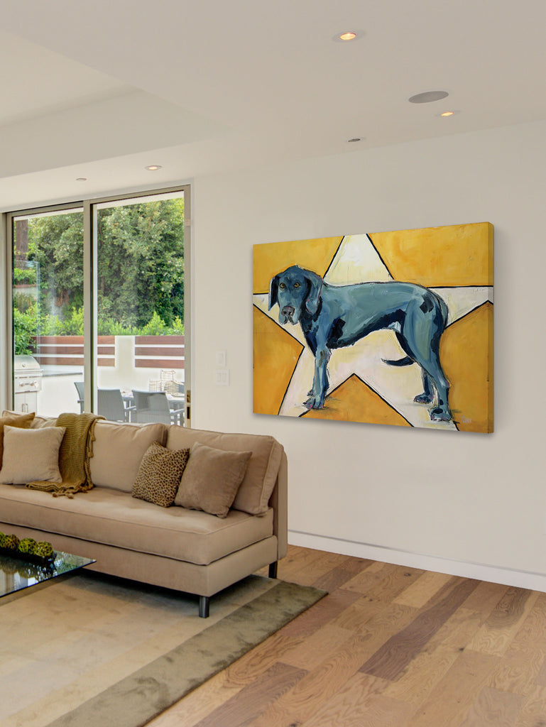 Tori Campisi artwork features dogs, patterns and other compositions exploding with optimism, color and "happy." In her words, "Ultimately, I want people to look at my art and smile, to find one part of their life within my painting that they, too, could relate to. I want my art to have a point of contact."