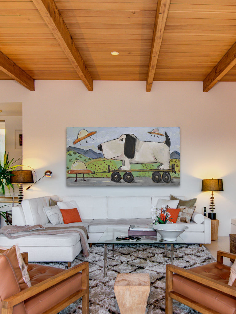 Tori Campisi artwork features dogs, patterns and other compositions exploding with optimism, color and "happy." In her words, "Ultimately, I want people to look at my art and smile, to find one part of their life within my painting that they, too, could relate to. I want my art to have a point of contact."