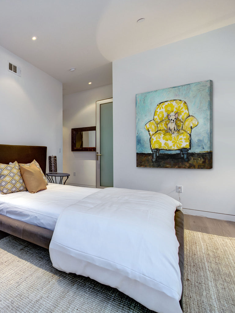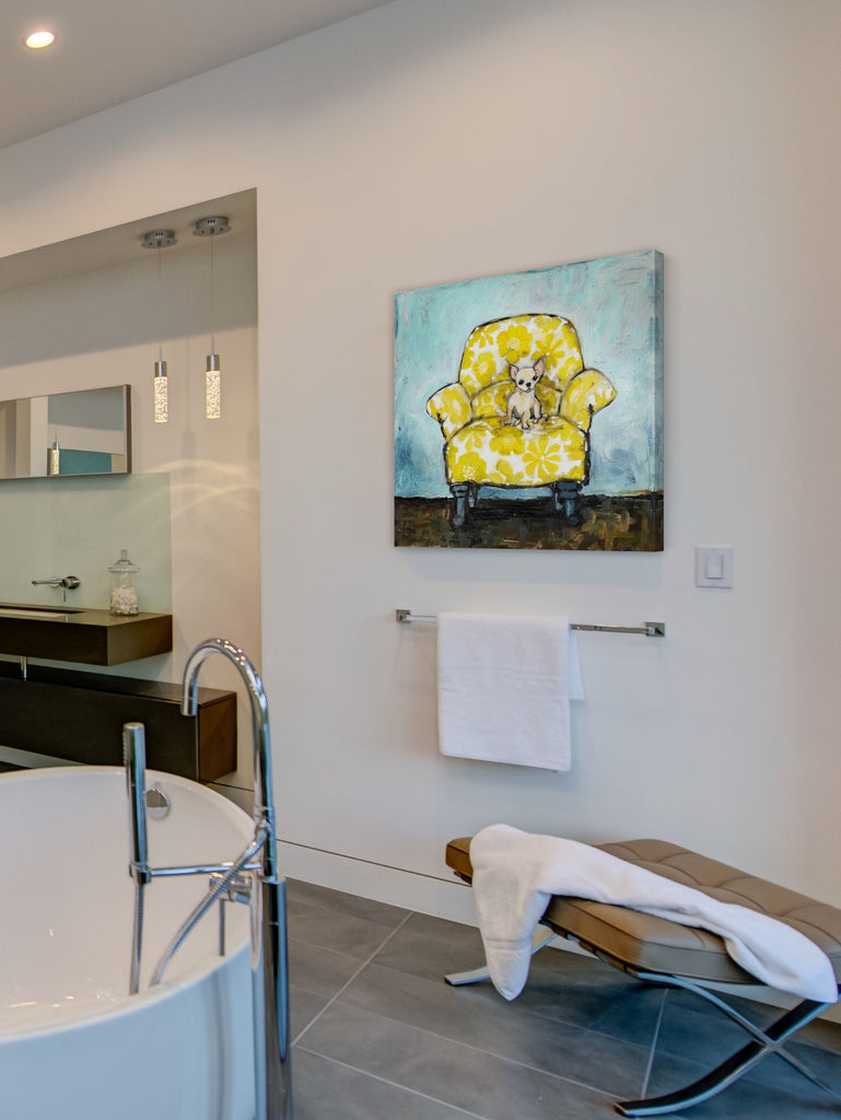 Tori Campisi artwork features dogs, patterns and other compositions exploding with optimism, color and "happy." In her words, "Ultimately, I want people to look at my art and smile, to find one part of their life within my painting that they, too, could relate to. I want my art to have a point of contact."