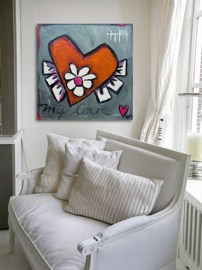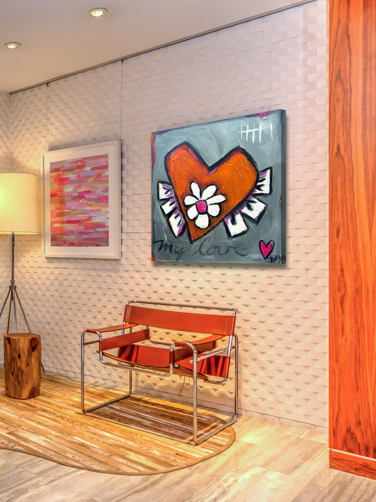 Tori Campisi artwork features dogs, patterns and other compositions exploding with optimism, color and "happy." In her words, "Ultimately, I want people to look at my art and smile, to find one part of their life within my painting that they, too, could relate to. I want my art to have a point of contact."