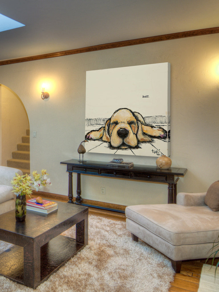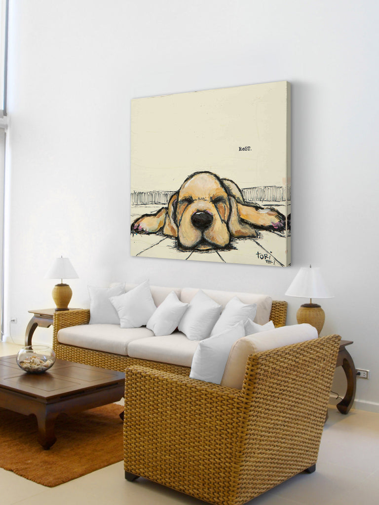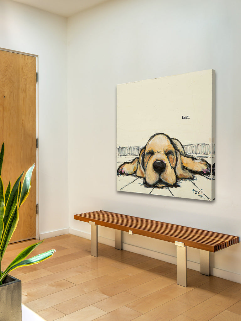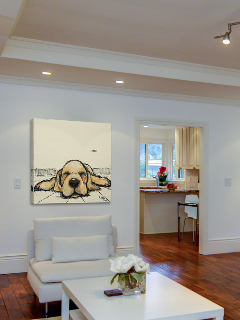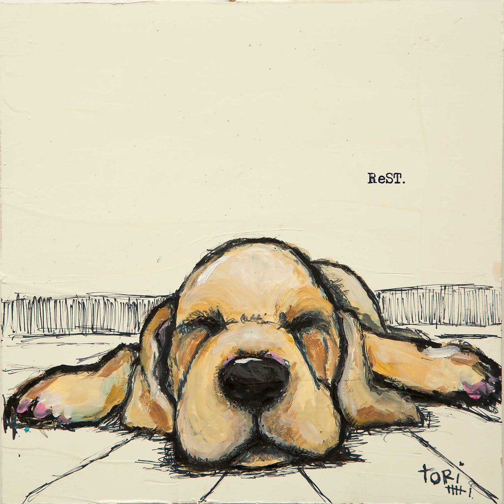 Tori Campisi artwork features dogs, patterns and other compositions exploding with optimism, color and "happy." In her words, "Ultimately, I want people to look at my art and smile, to find one part of their life within my painting that they, too, could relate to. I want my art to have a point of contact."